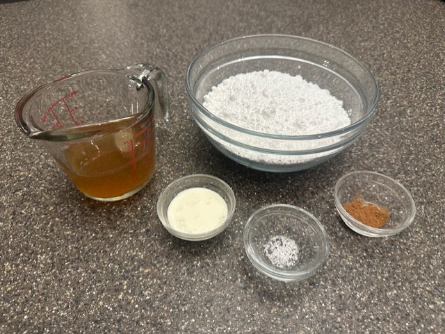 - Add the powdered sugar, salt, cinnamon and heavy cream to the bowl of a stand mixer, then drizzle in the warm, reduced cider. Mix at high speed until all of the ingredients are combined. If you'd prefer a thinner glaze, add in a little more cream.