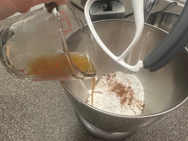 Step 10: Add the powdered sugar, salt, cinnamon and heavy cream to the bowl of a stand mixer, then drizzle in the warm, reduced cider. Mix at high speed until all of the ingredients are combined. If you'd prefer a thinner glaze, add in a little more cream.
