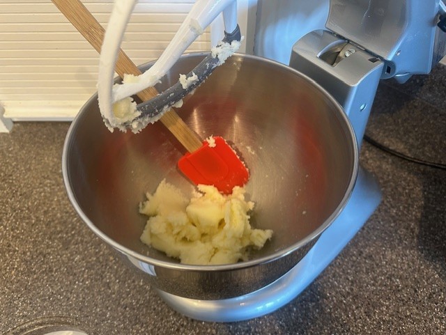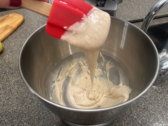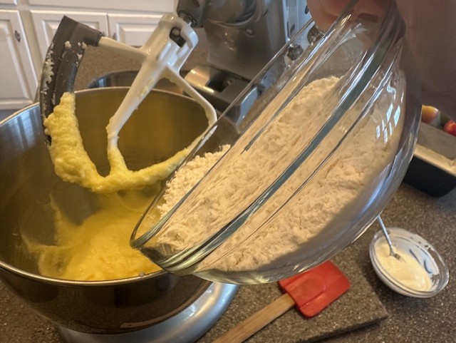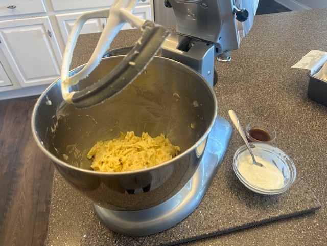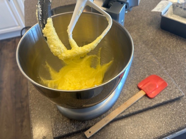 Step 3: In the bowl of your stand mixer (or a large bowl, if using a handheld mixer), cream the butter and sugar for the bread ingredients. Once the mixture is pale yellow in color, about 2 minutes, add in the eggs, one at a time and mix until the batter is no longer glossy.