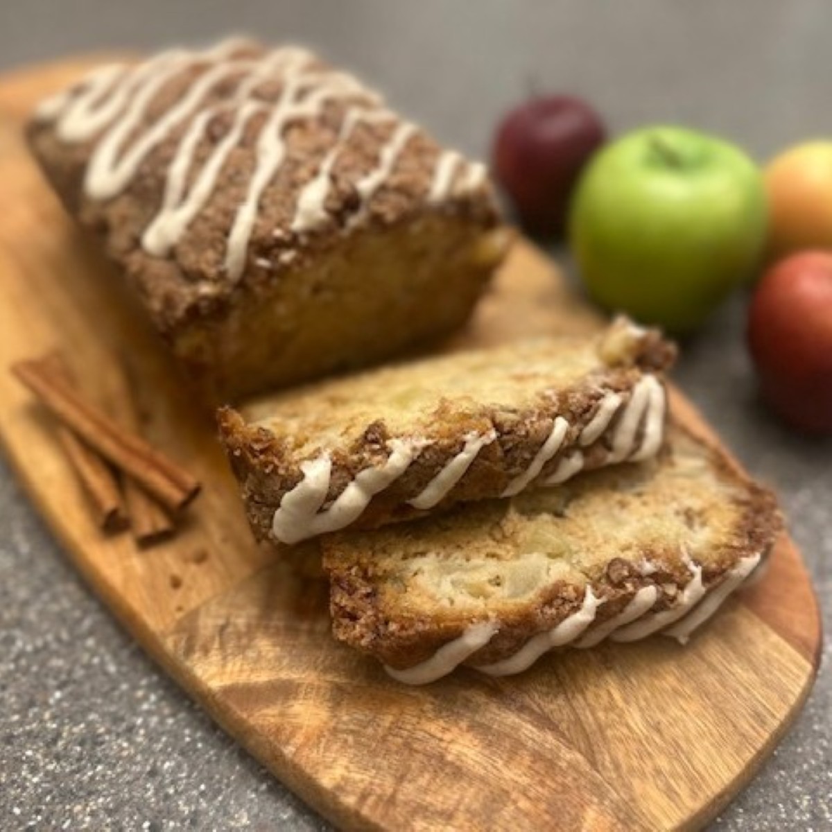 - Drizzle the cider glaze over the top of the cooled bread. Slice and serve.