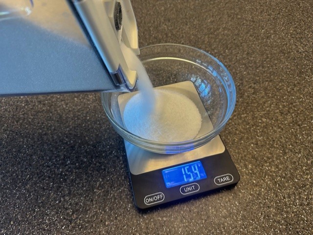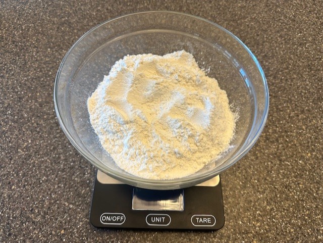 - In a bowl over a kitchen scale, weigh your flour and baking powder, and add the salt.