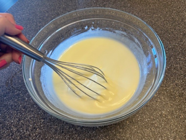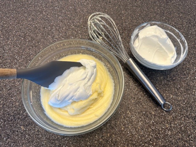 Step 4: Gently fold in the sour cream, a few spoonfuls at a time, and mix altogether until fully incorporated. Set aside.