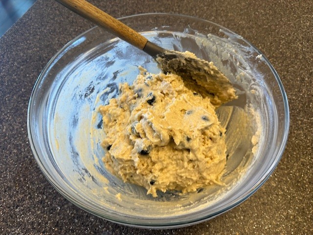 - Into the bowl of dry ingredients, add the cinnamon and the blueberries, tossing the berries by hand to make sure they are well coated in the flour mixture.