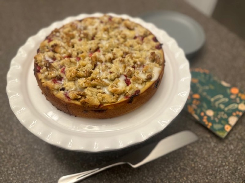 This simple and delicious Cranberry Citrus Crumb Cake is ideal for holiday gatherings, a perfect blend of sweet and slightly tart in every bite. Years ago, I used to cater dinner parties for the Senior's ministry at my parents' church with my friend Becca, and she and I made about ten of these cakes for the Christmas dinner one year. When plenty of guests asked for the recipe afterwards, we knew it was a big hit, and I've been sharing it with friends and family ever since!