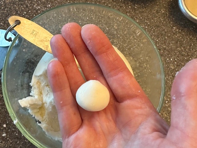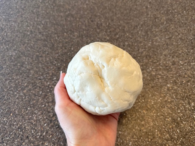 Step 2) Gently knead the dough on a clean worksurface until smooth and roll into a ball. The consistency will be a stiff, sugar paste with a marshmallow flavor, very similar to fondant. Place the ball into a bowl, cover, and pop into the refrigerator for about an hour.