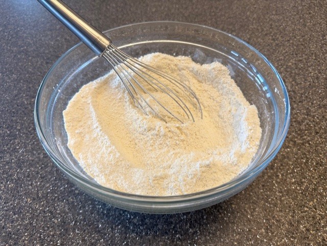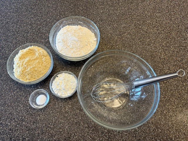 - Whisk together both flours, all-purpose and almond, along with the cornstarch and salt until fully combined.