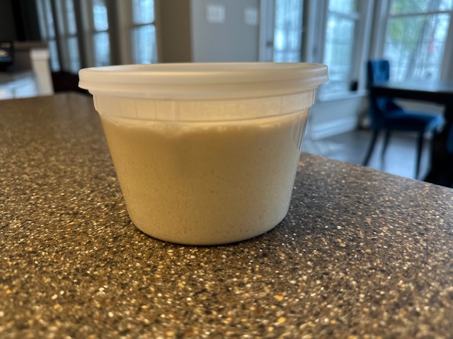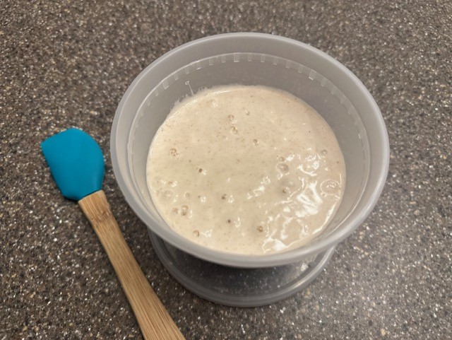 *Note: As the mixture is not yet fully active, it is not ready to be used in any sourdough discard recipes as of yet, so for now, you should throw away any excess starter. It is also never recommended to utilize a kitchen sink garbage disposal to discard starter as the mixture can create clogs.