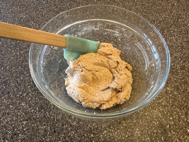 Step 4) Using a spatula, fold together the flour and water until the mixture comes together to form a thick paste. Be sure not to leave any loose traces of unmixed flour. Move the mixture into a clean container and cover, allowing it to rest at room temperature for approximately 12 hours.